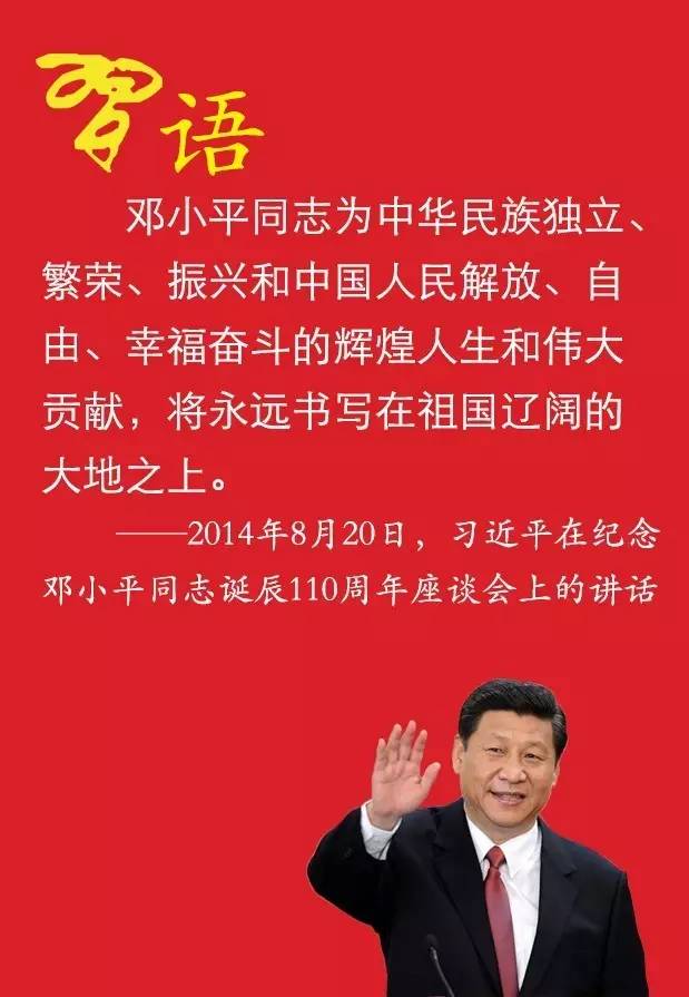2014年8月20日,习近平在纪念邓小平同志诞辰110周年座谈会上发表重要讲话,其中引用了大量邓小平同志的经典论述,号召全党学习邓小平同志的崇高品格和理论品质。让我们来回顾总书记对邓小平的评价及引用的经典论述。